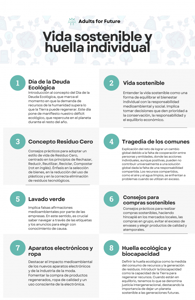 • Reconocer la importancia de un estilo de vida sostenible y cómo revisar concretamente los propios hábitos